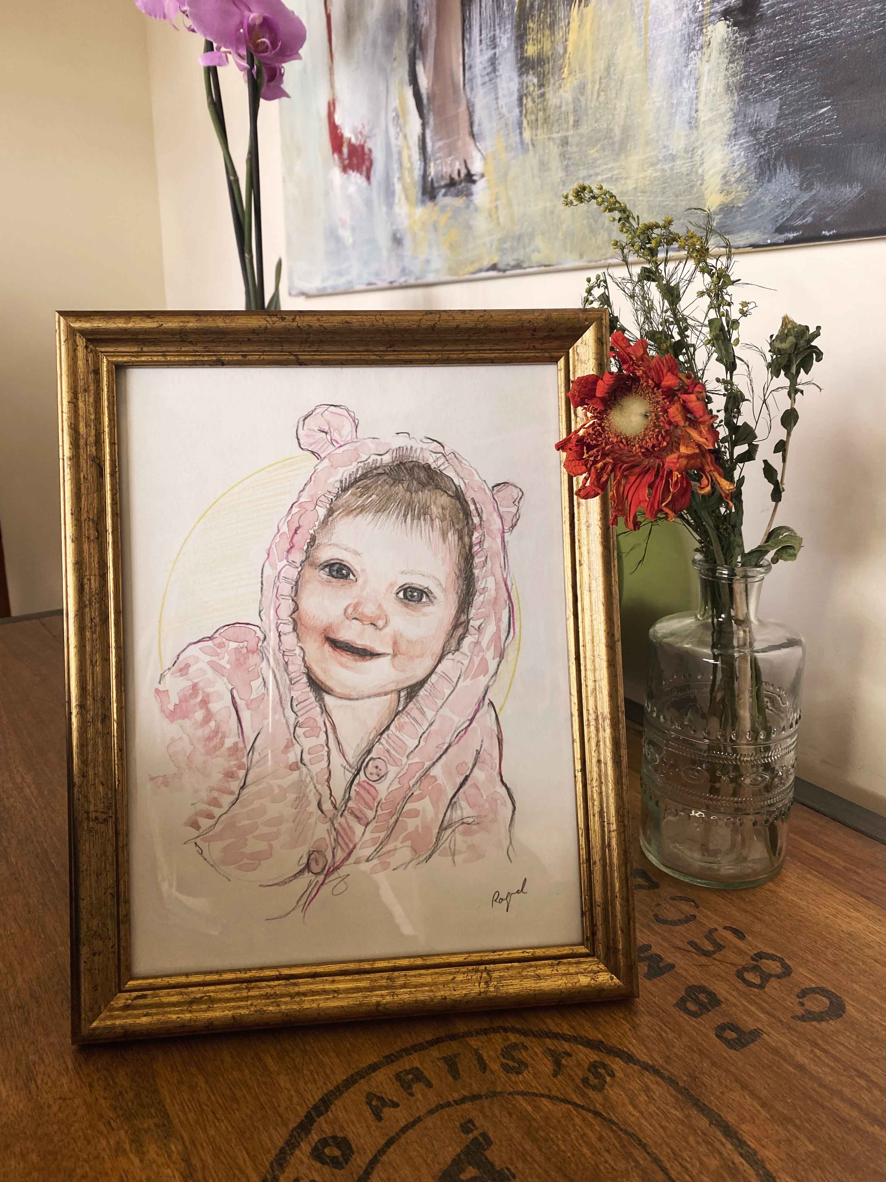 Si queréis hacer un detalle a aquella familia que acaban de ser papás, o para la ceremonia del bautizo, regalarles una acuarela del bebé ó un dibujo de la familia, para colgarlo en la habitación, es algo muy especial que seguro que les hará mucha ilusión.